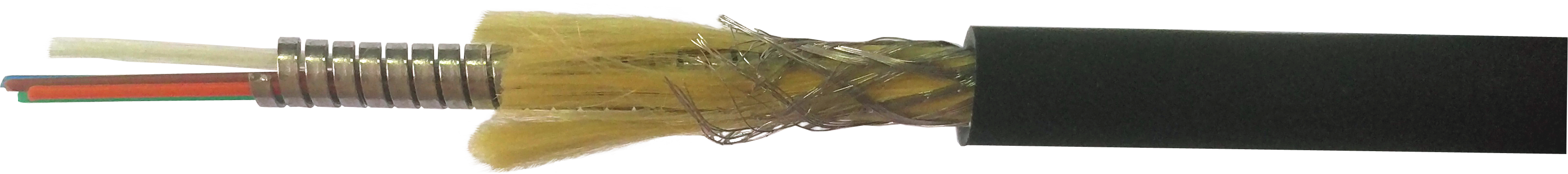 Броней в кабеле служит прочная стальная лента, завитая по спирали. Упругость данной конструкции обеспечивает максимальную гибкость кабеля, при этом хорошо защищая волокна от внешних механических воздействий.