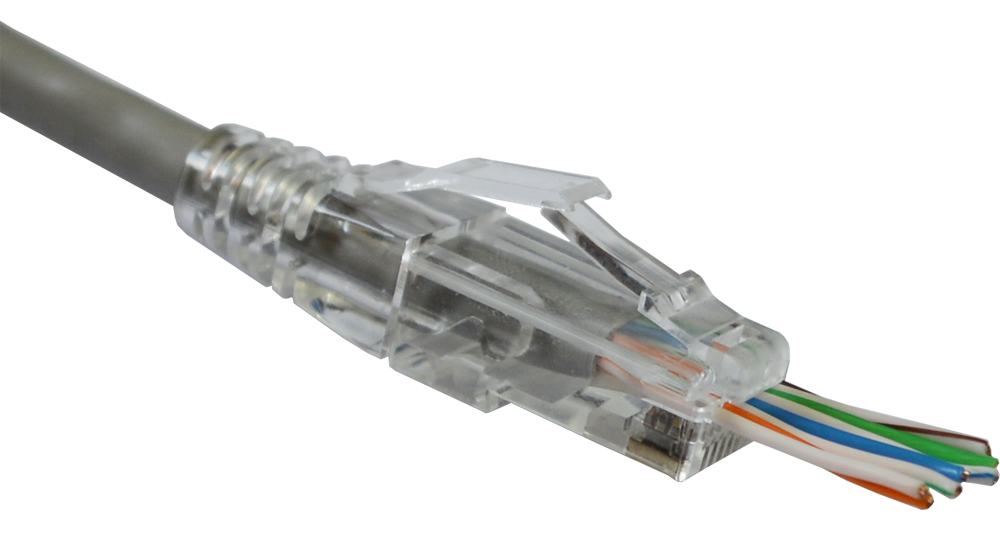 Кроме того, соединение получается более прочным и надежным, потому что вы проводите кабель в коннектор настолько, чтобы внешняя изоляция кабеля сразу до упора зашла в коннектор и надежно плотно там зафиксировалась. Тем самым получаем более качественный монтаж, исключается брак и ошибки монтажников. Коннекторы доступны категории 5е и 6, в экранированном и неэкранированном варианте.