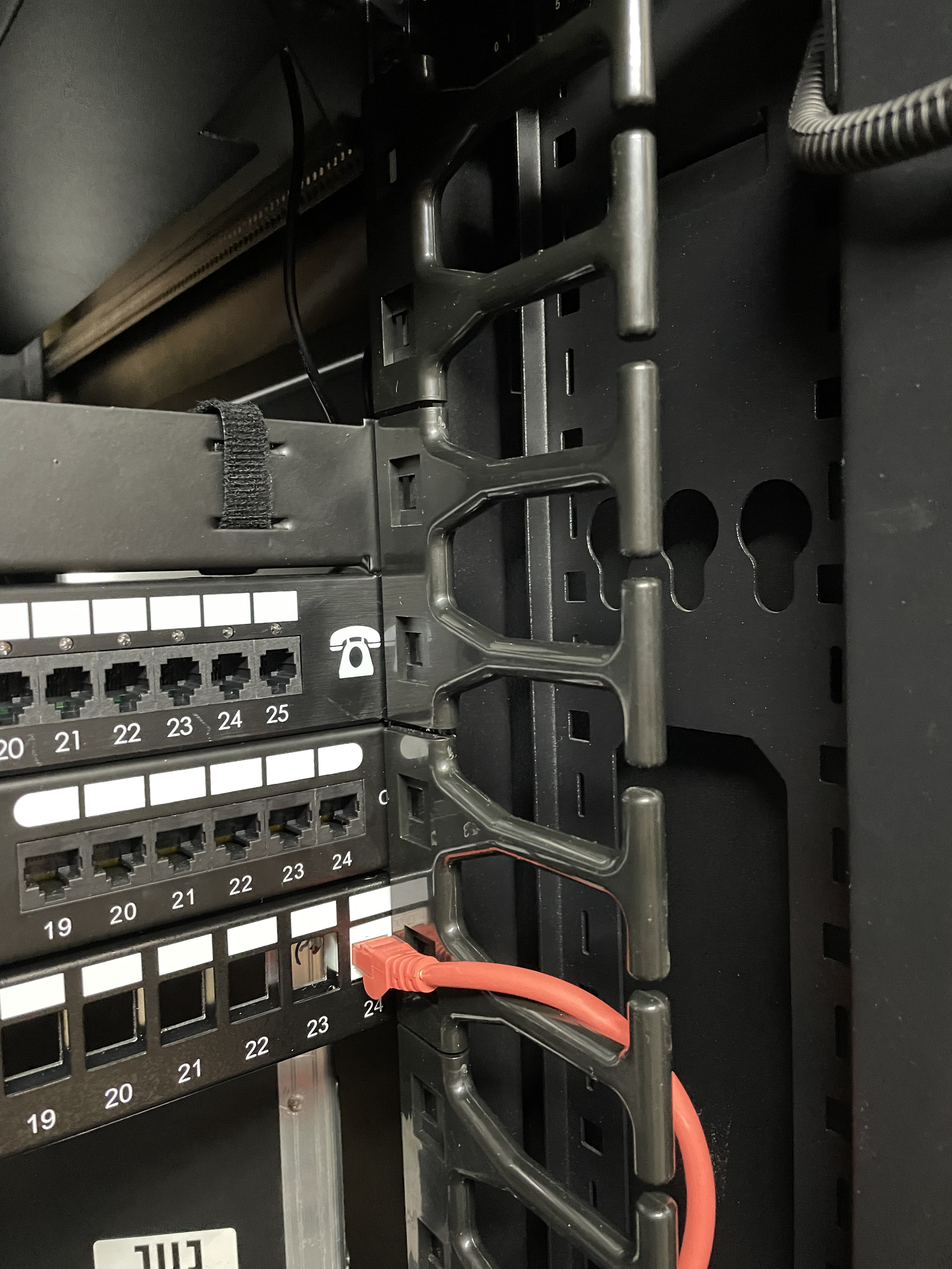 Распределение и поддержка кабелей обеспечиваются за счет пластиковых «пальцев» на уровне каждого юнита. Элементы изготовлены из армированного пластика, обеспечивают поддержку кабелей на уровне каждого юнита. Скругленная поверхность «пальцев» предохраняет оболочку кабелей от повреждений и обеспечивает требуемый радиус изгиба.