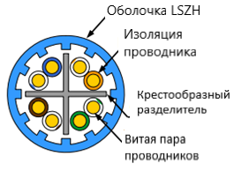 Пары отделены друг от друга крестообразной перегородкой, увеличивающей переходное затухание между парами.
