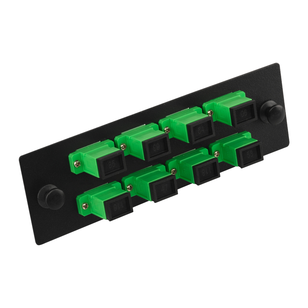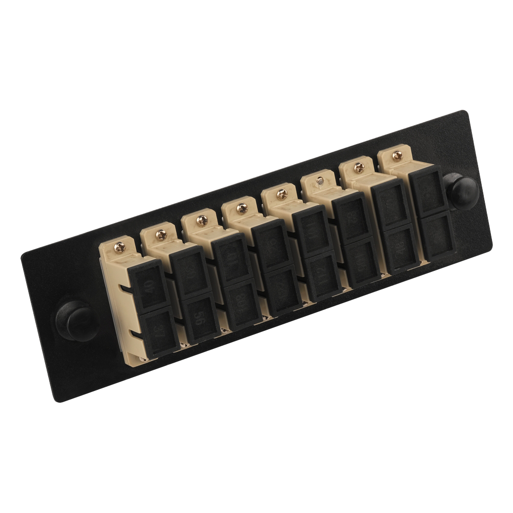 Адаптерные панели комплектуются оптическими адаптерами, устанавливаемыми в заводских условиях. Использование заполненных адаптерных панелей существенно сокращает время, необходимое для монтажа оптических кроссов. Фиксация панелей в кроссе осуществляется с помощью пластиковых защелок.