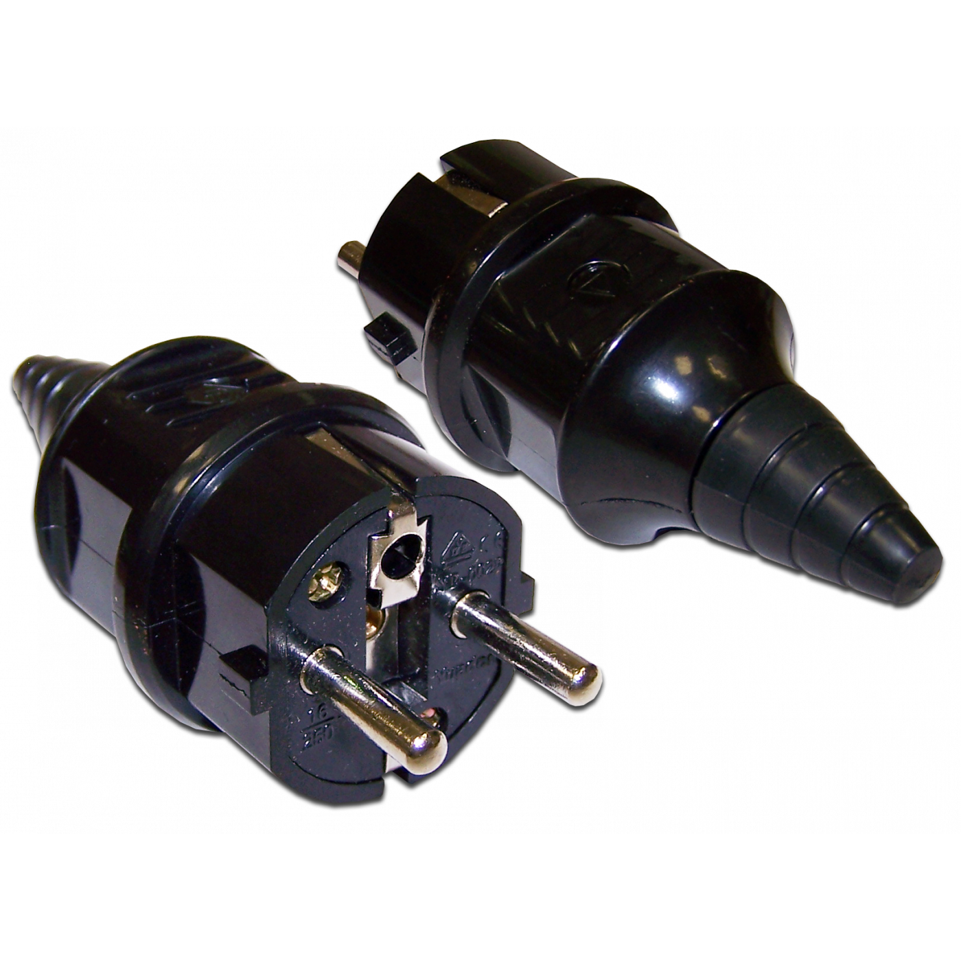 Вилка Schuko предназначена для установки на электрические кабели для подключения к электрическим трехконтактным розеткам немецкого или французского стандартов.