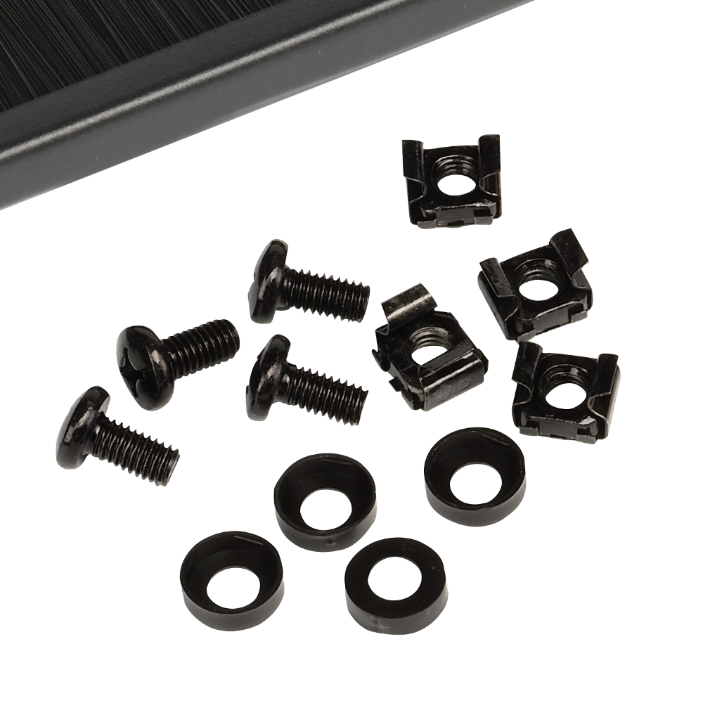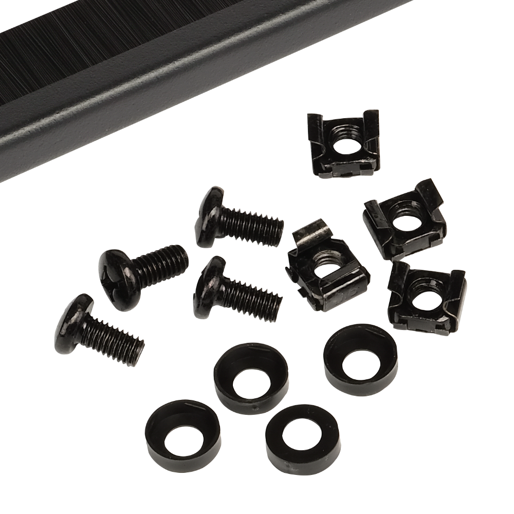 Панель фиксируется на профилях при помощи винтов (в комплекте поставки). Конструкция состоит из двух частей с размыкаемым контуром щетки, что обеспечивает простой монтаж и обслуживание кабелей без их демонтажа.