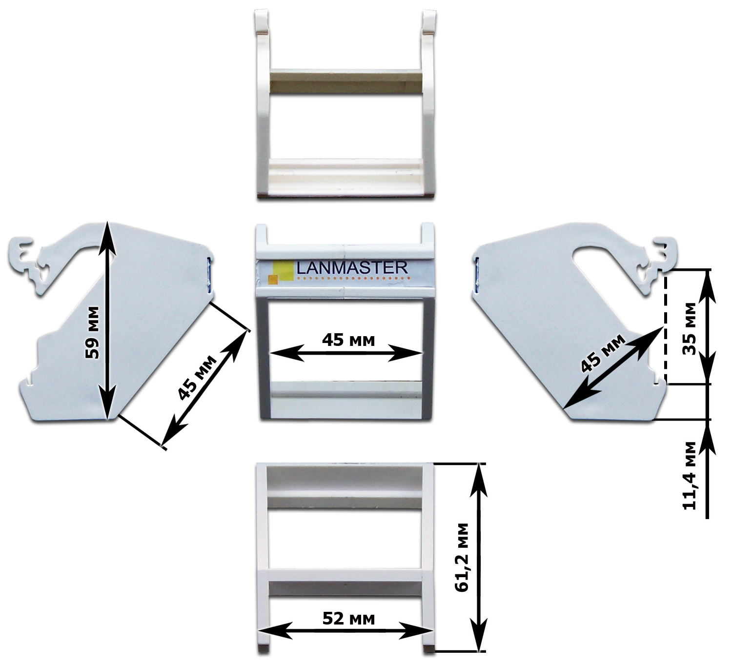 Суппорт (рамка) предназначен для установки на DIN-рейку для организации портов телекоммуникационных линий связи или электроустановочных изделий типоразмера Mosaic 45x45.