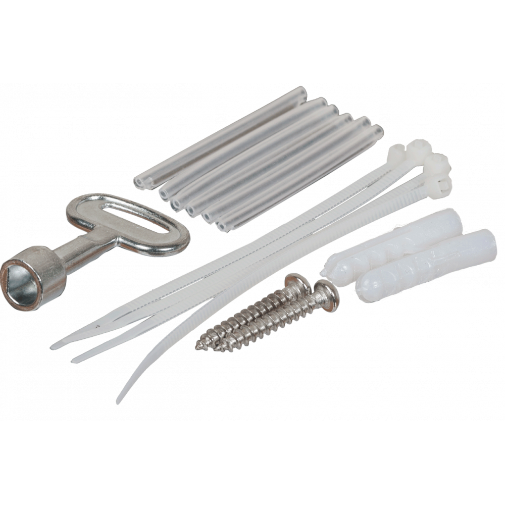 Установка кросса может быть осуществлена на прилагаемые дюбеля и саморезы. Конструкция крепления позволяет размещать бокс на столбах, стенах. В комплект входит ключ, при помощи которого обеспечивается плотная фиксация крышки кросса.