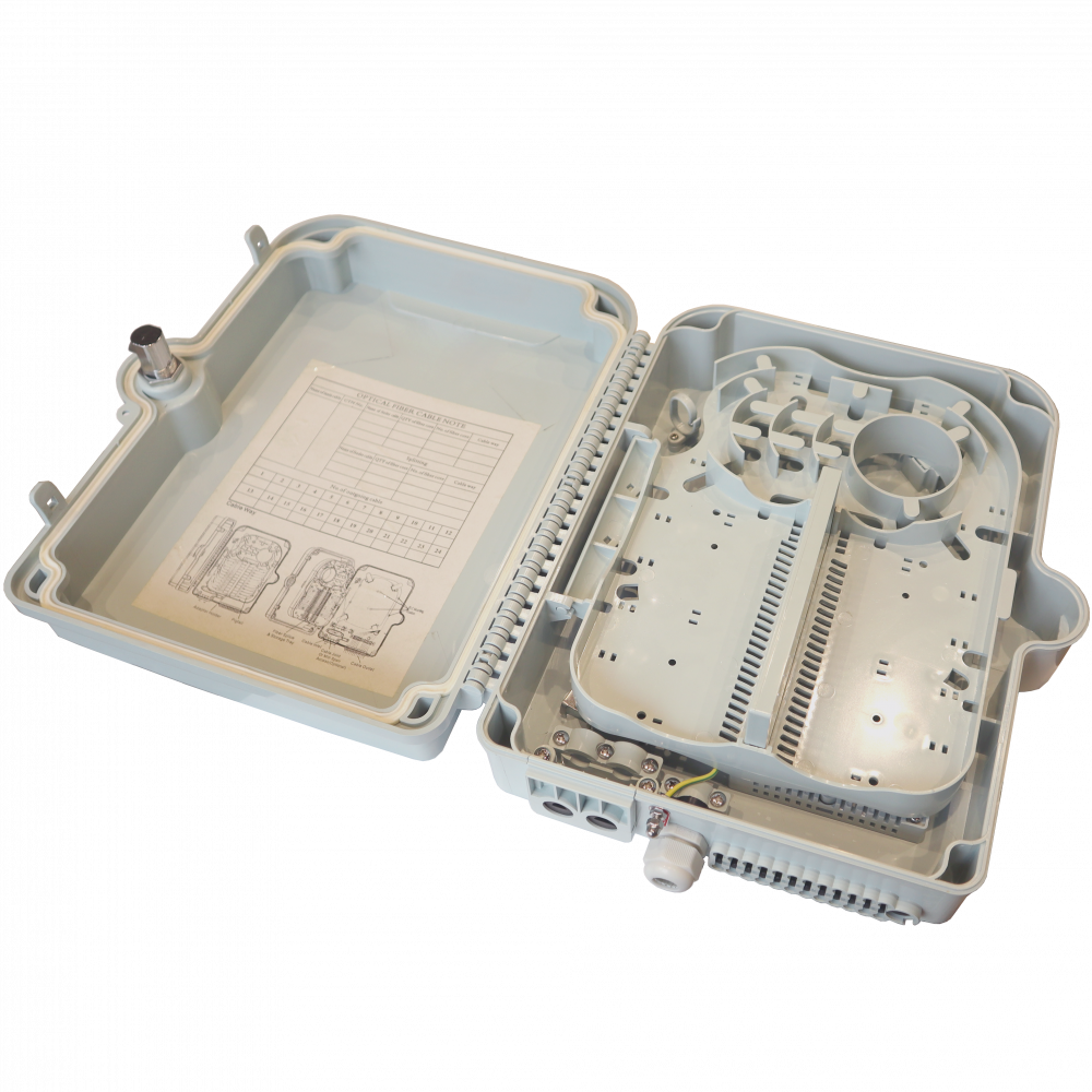 Пластиковые боксы предназначены для монтажа оптических линий связи при построении сетей FTTX и PON внутри и снаружи помещений. Данная модель может быть использована в качестве оптического кросса либо муфты емкостью до 24 волокон.