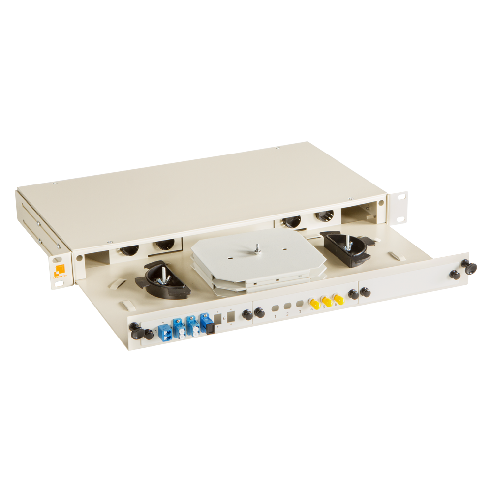 Кроссы комплектуются органайзерами для хранения запаса кабеля, а также двумя сплайс-пластинами. Позволяет установить до 3-х адаптерных панелей, при этом ёмкость кросса составит от 6 до 24 портов.