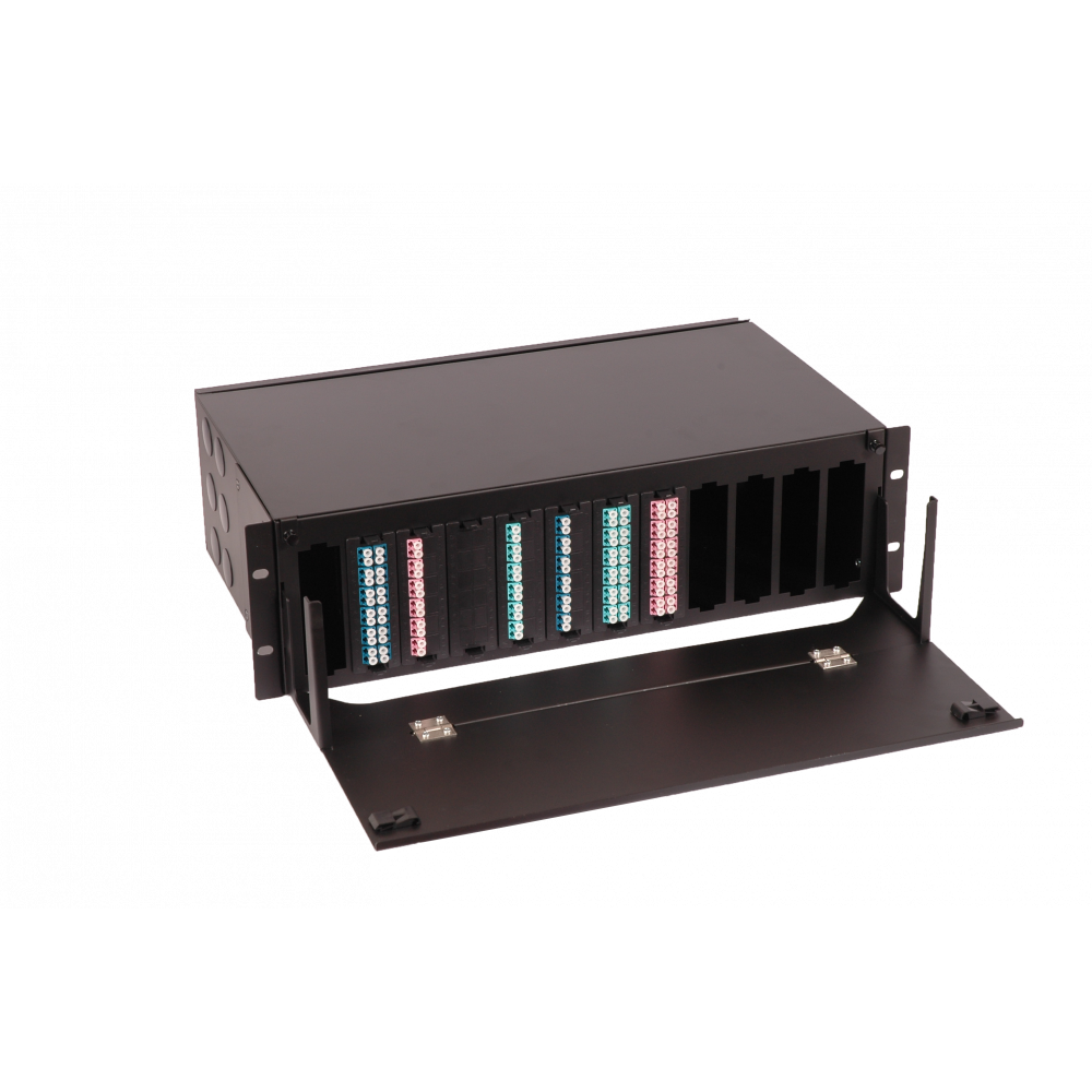 Кроссы предназначены для монтажа оптических MPO кассет высокой плотности в 19" шкаф или стойку. Кассеты фиксируются в кроссе при помощи пластиковых защелок, без использования инструментов. Подвод кабельных сборок MPO для коммутации кассет осуществляется через кабельные вводы, закрытые пыльниками. Передняя часть кросса оборудована откидывающейся защитной панелью, предохраняющей места подключения оптических коммутационных шнуров от механических повреждений.