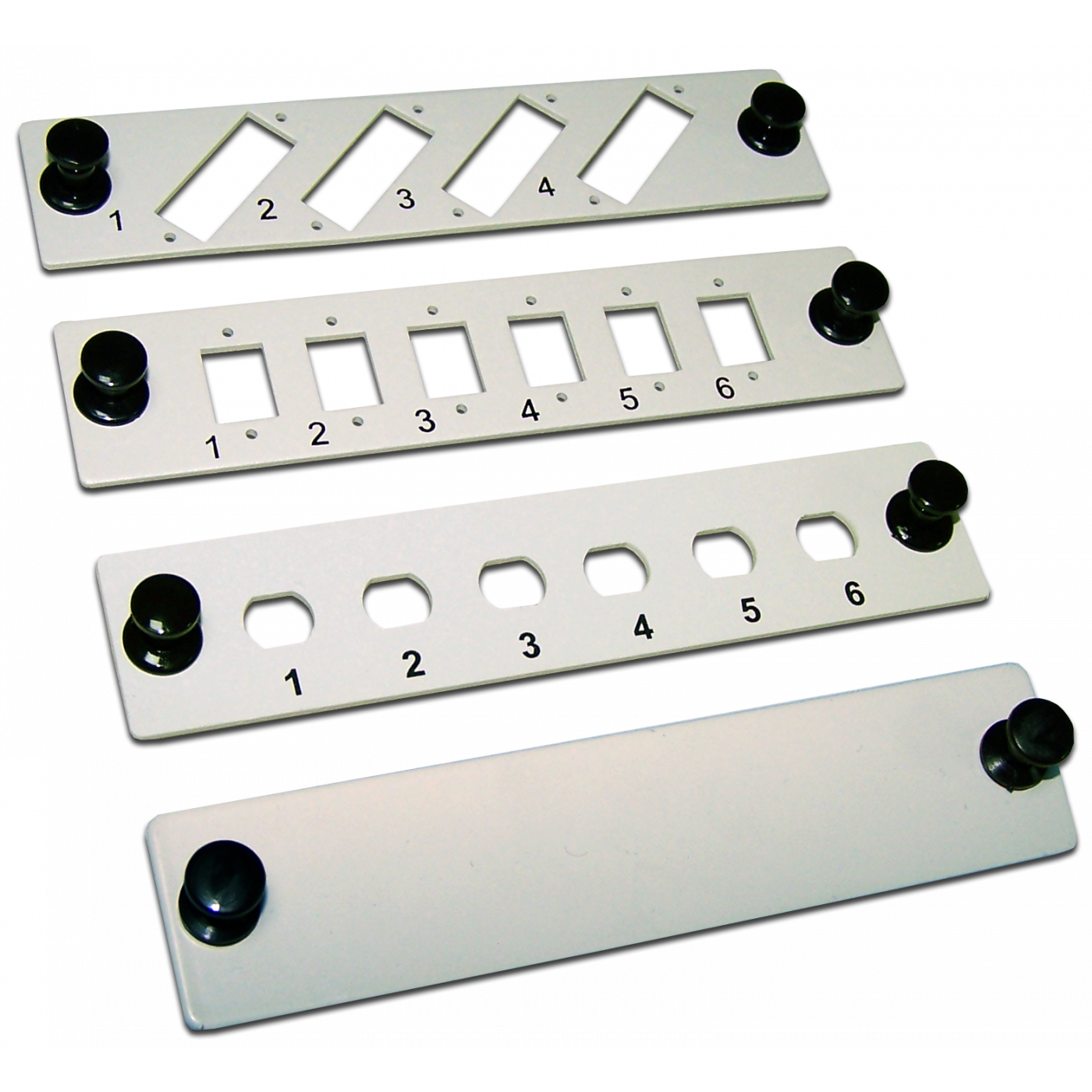 Для закрытия неиспользуемых отверстий под адаптерные панели в кроссах используются специальные заглушки, совпадающие по размерам с адаптерными панелями.