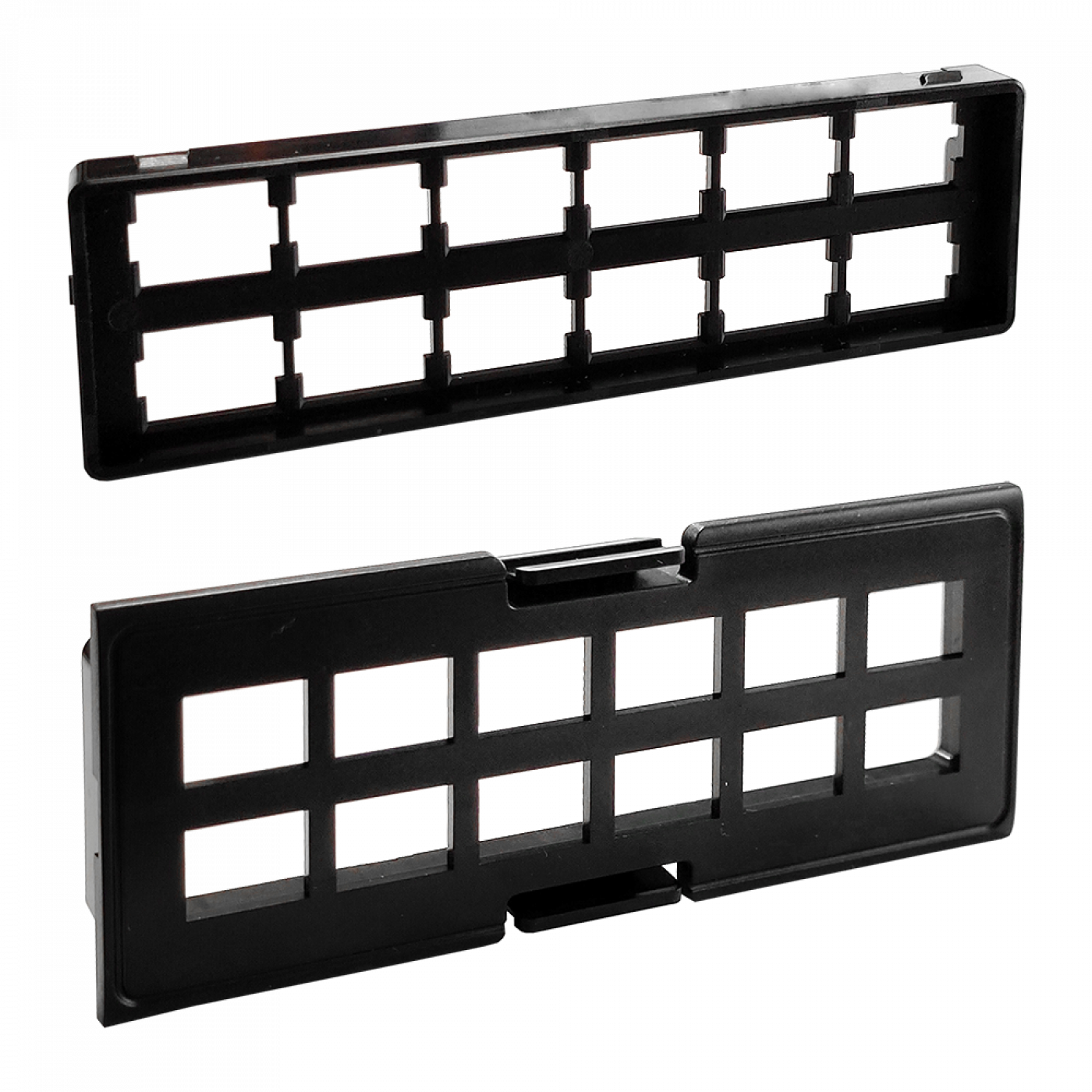 Планки предназначены для установки адаптеров SC Simplex/ LC Duplex в патч-панели LAN-FRM. В панель можно установить до 4х планок по 12 адаптеров. Таким образом, при реализации соединений на адаптерах LC Duplex, плотность размещения составляет 96 портов на 1 юнит.