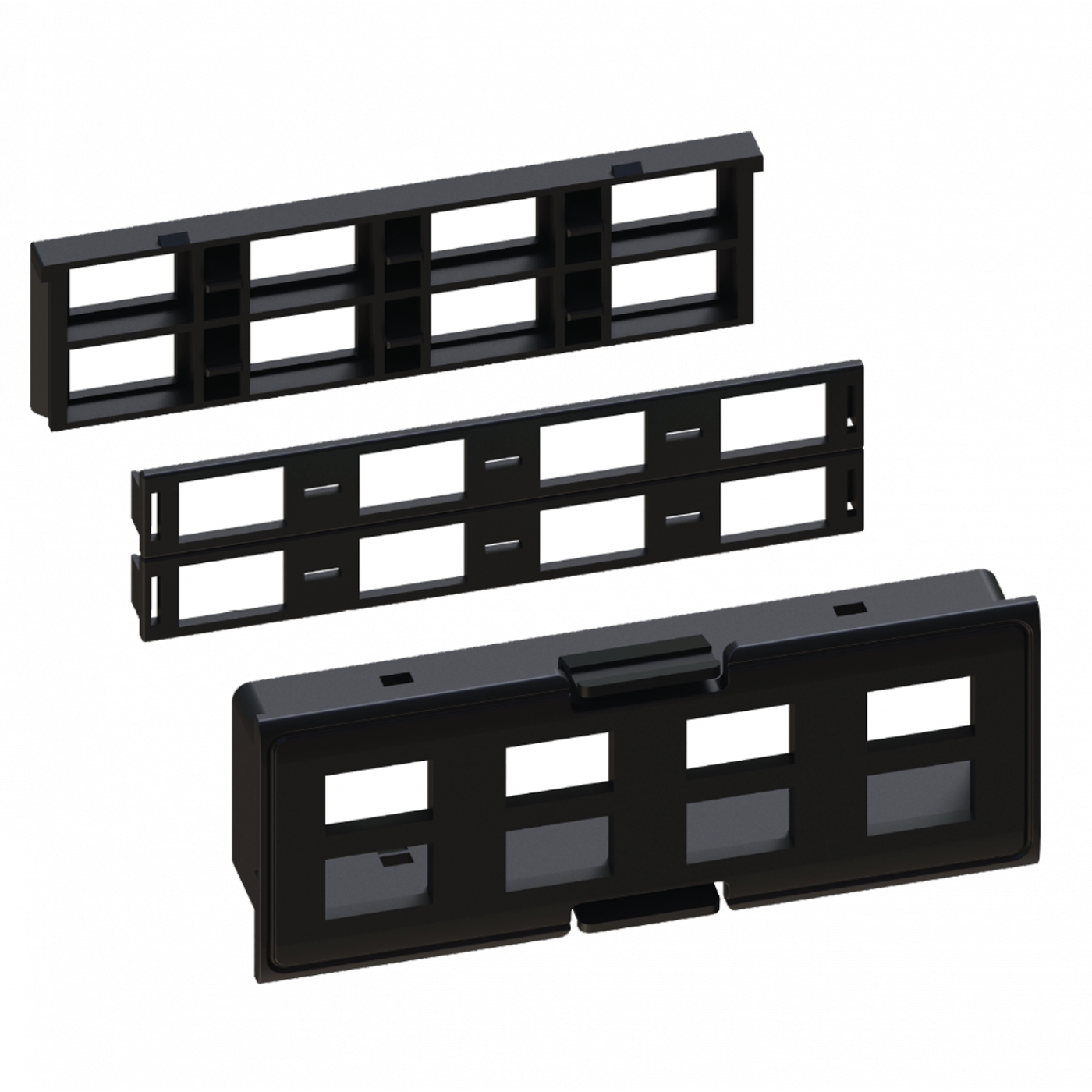 Конструкция пластиковой планки сборная, состоит из трех элементов, при помощи которых фиксируются адаптеры. Адаптеры не входят в комплект поставки.