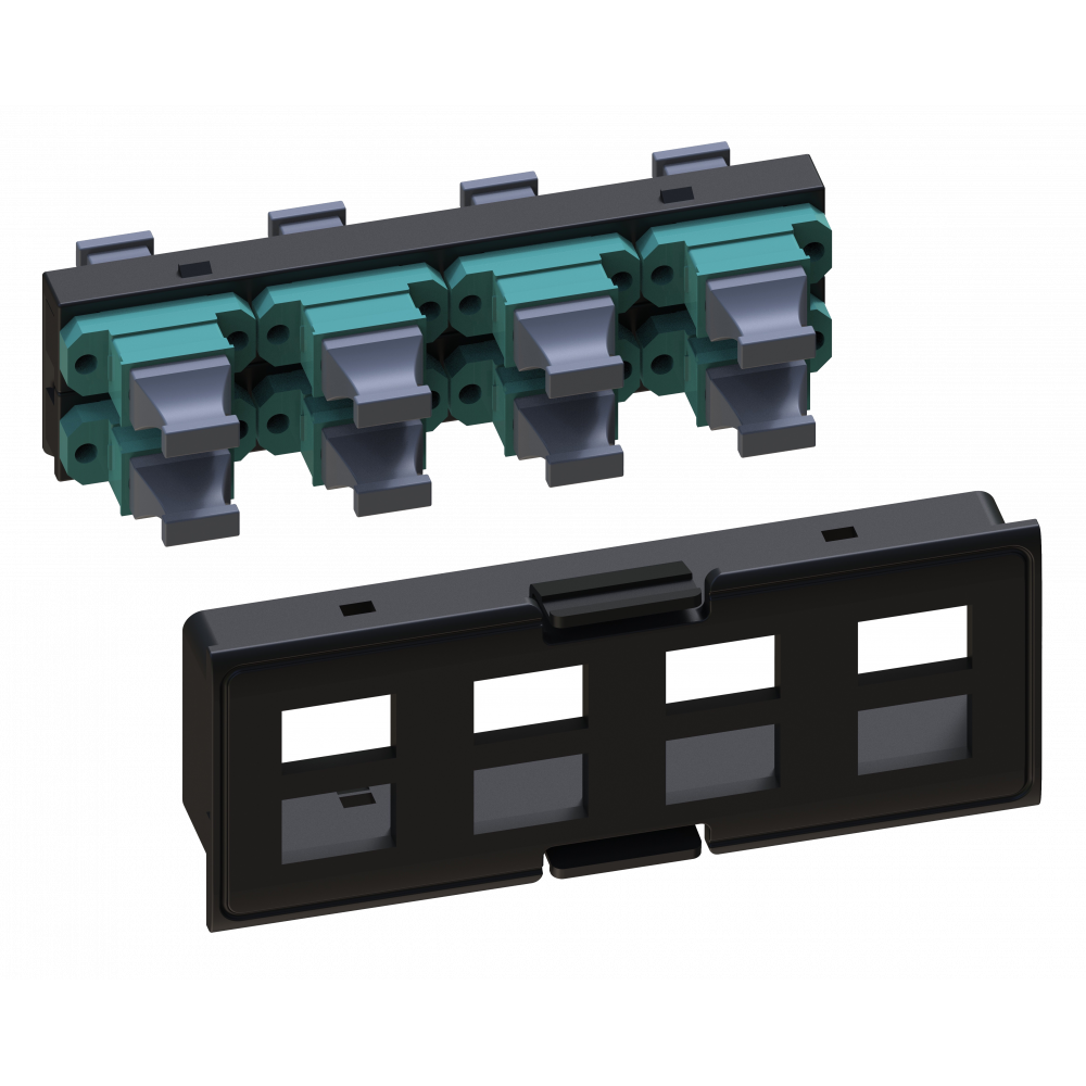 Планки предназначены для установки адаптеров MPO в патч-панели LAN-FRM. В панель можно установить до 4х планок по 8 МРО, таким образом обеспечивается плотность размещения 384 волокна на 1U.