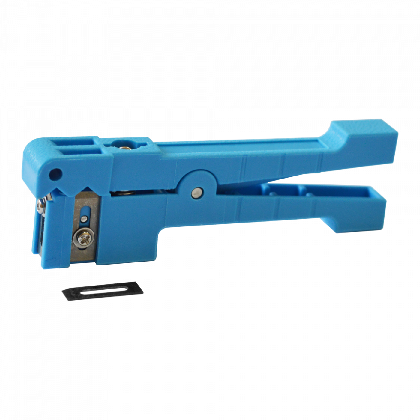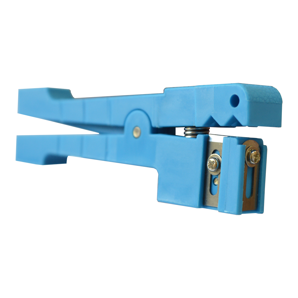 Стриппер-прищепка предназначен для снятия изоляции кабеля диаметром от 2 до 6 мм. В корпусе инструмента установлено два лезвия, для выполнения поперечного продольного разреза.Оба лезвия сменные, имеют регулировку по глубине. Лезвие для продольной резки, для удобства работы, имеет скругленную форму.