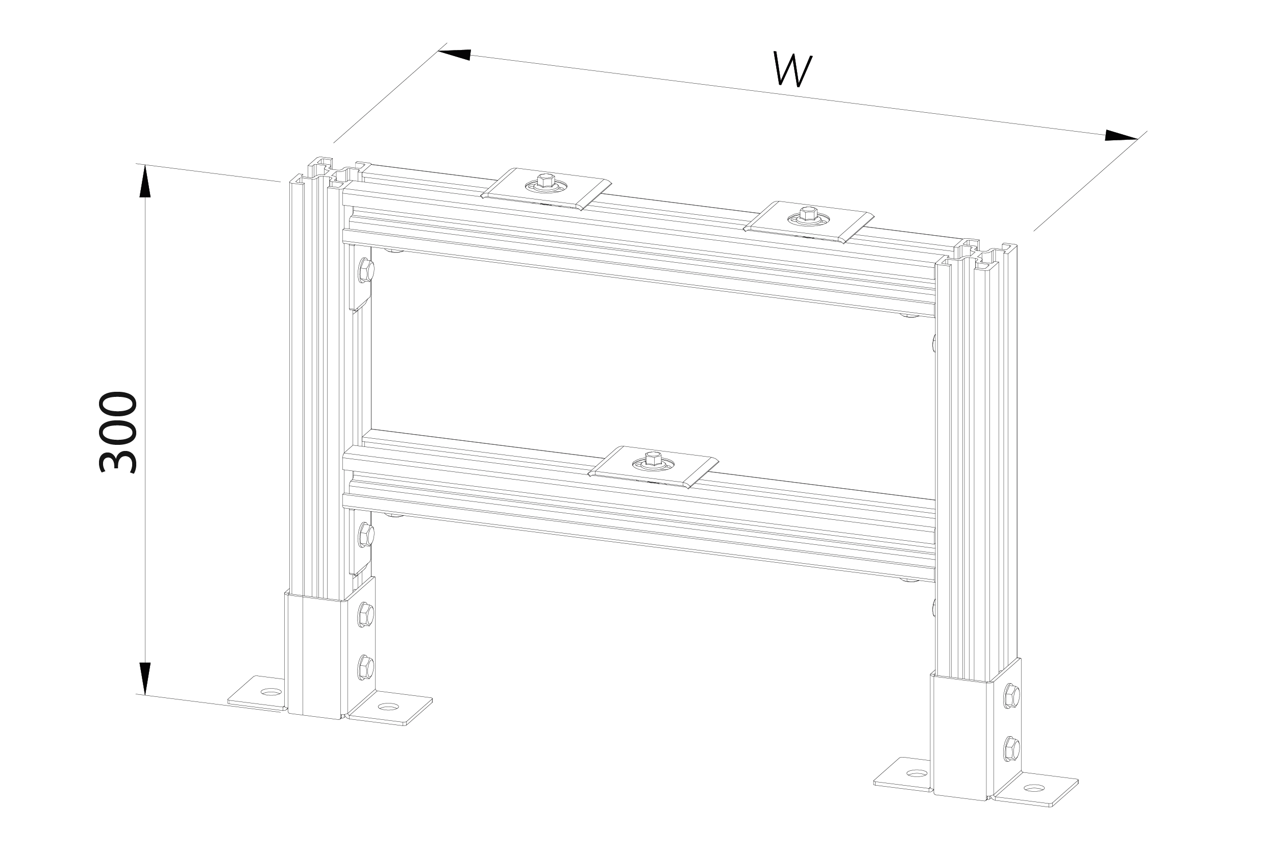 Рама напольная двойная из алюминиевого профиля, высота 300мм, ширина 200мм