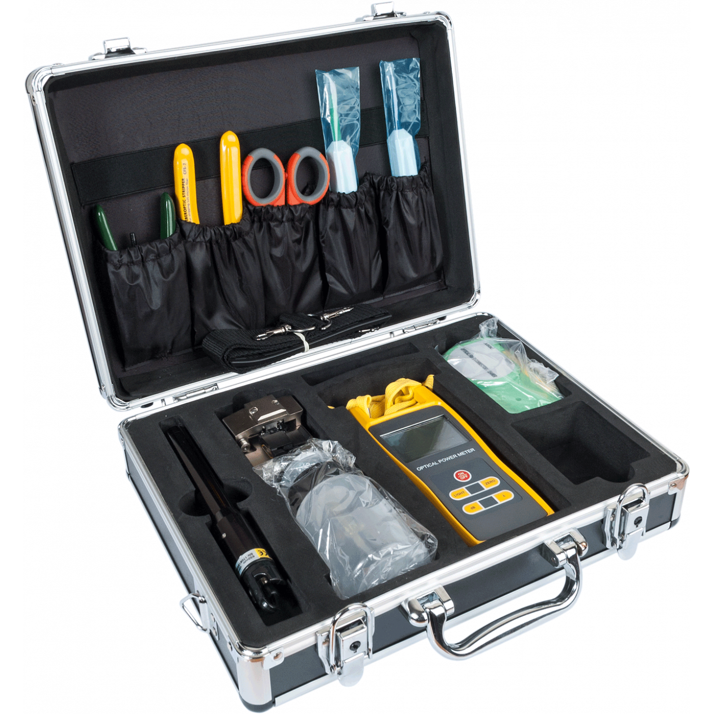 Набор предназначен для проведения монтажных работ с оптическими кабелями. При помощи инструментов,входящих в состав набора, можно разделать ВО кабель, зачистить волокна для сварки, сколоть волокно, измерить мощность излучения в волокне, почистить коннекторы и т.д.