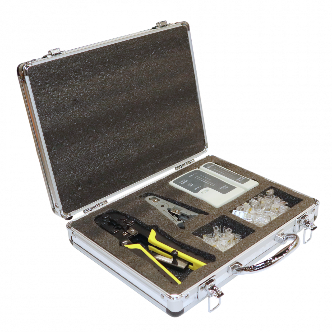 Инструменты, входящие в набор, позволяют производить операции по обрезке и зачистке кабелей, обжиму коннекторов RJ-12 и RJ-45.