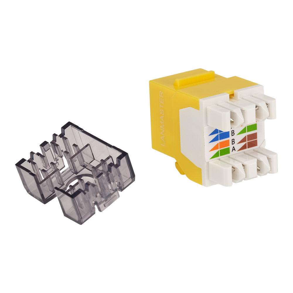 Отличительной особенностью данного модуля является наличие встроенной шторки, автоматически утапливаемой при подключении к модулю патч-корда. Ширина этого модуля позволяет устанавливать его в наборных патч-панелях высокой плотности как производства LANMASTER, так и других производителей. Цветовая маркировка панели целиком или отдельных ее элементов позволяет визуально идентифицировать порты. Поэтому разноцветные модули KeyStone могут использоваться как способ увеличения эффективности администрирования СКС.