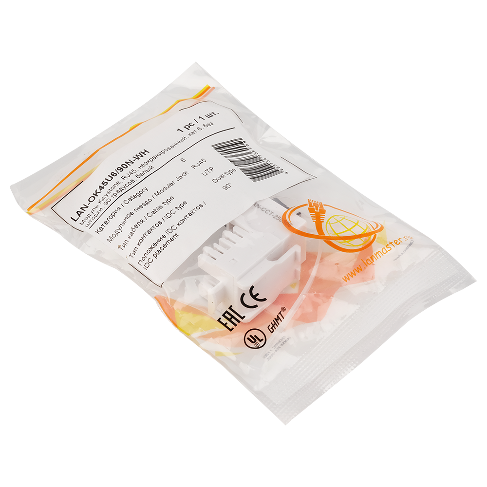 Модуль имеет стандартный типоразмер Keystone и может использоваться не только в розетках LANMASTER, но и в розетках других производителей.