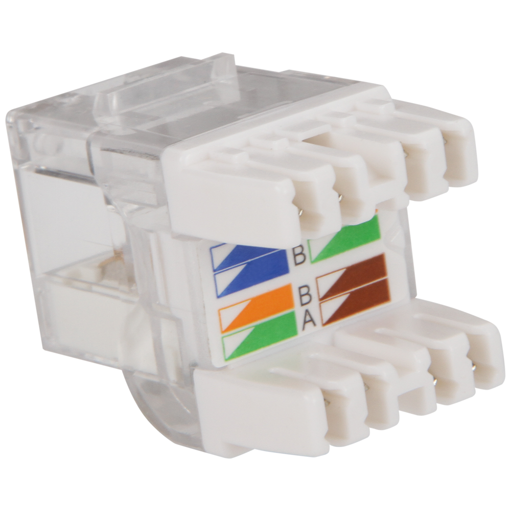 Для удобства монтажа, между разъемами IDC расположена схема подключения проводников кабеля, в соответствии со схемами T568A и T568B.