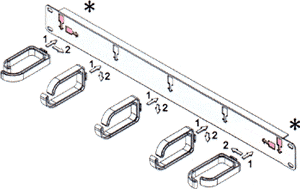 Для организации вертикальных кабельных потоков предусмотрена возможность горизонтального крепления двух крайних колец на органайзере.