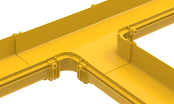 Горизонтальный отвод с лотка 240 мм на лоток 120 мм, монтаж без соединителей, желтый