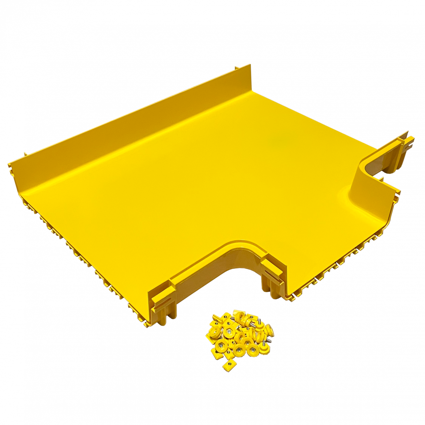 Горизонтальный отвод с лотка 600 мм на лоток 360 мм, монтаж без соединителей, желтый