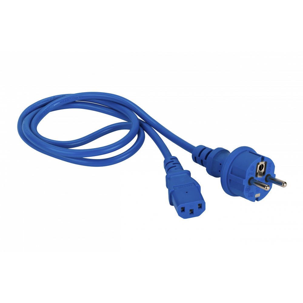Шнур изготовлен из многожильного провода ПВС 3 х 0,75. Вилка А изготовлена заливным способом из ПВХ не поддерживающего горение согласно DIN49441. Разъем с противоположной стороны (вилка В) изготовлен заливным способом из ПВХ не поддерживающего горение согласно IEC 60320 C13.