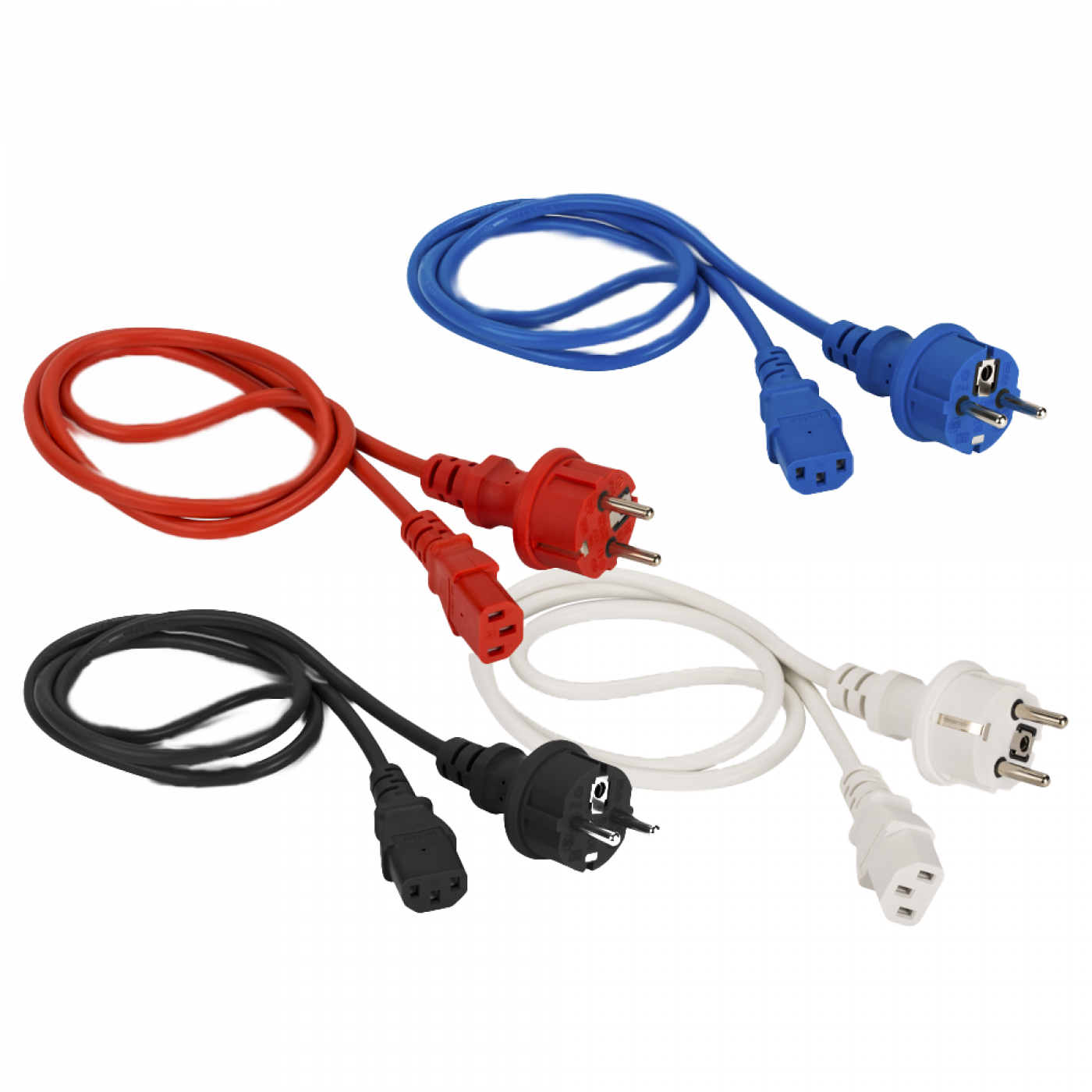 Кроме обычных кабелей черного цвета, есть так же кабели питания белого, синего и красного цветов. Сочетая кабели питания разного цвета в соединениях активного оборудования, в рамках одной стойки, можно экономить время на идентификацию оборудования и подключений, тем самым производить маркировку по группам аппаратных средств в зависимости от системы в составе инфраструктуры.