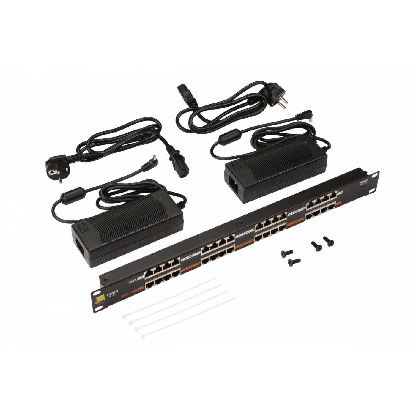 Панель POE 19", 16 портов, с двумя блоками питания 48V, 120W