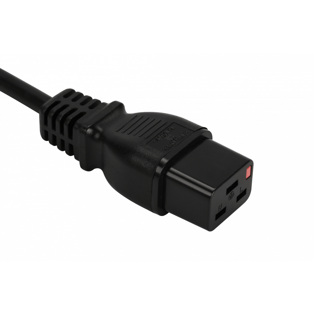 Особенностью этого шнура питания является то, что штекер С19 оснащен механизмом защиты от случайного или преднамеренного отключения от сети.