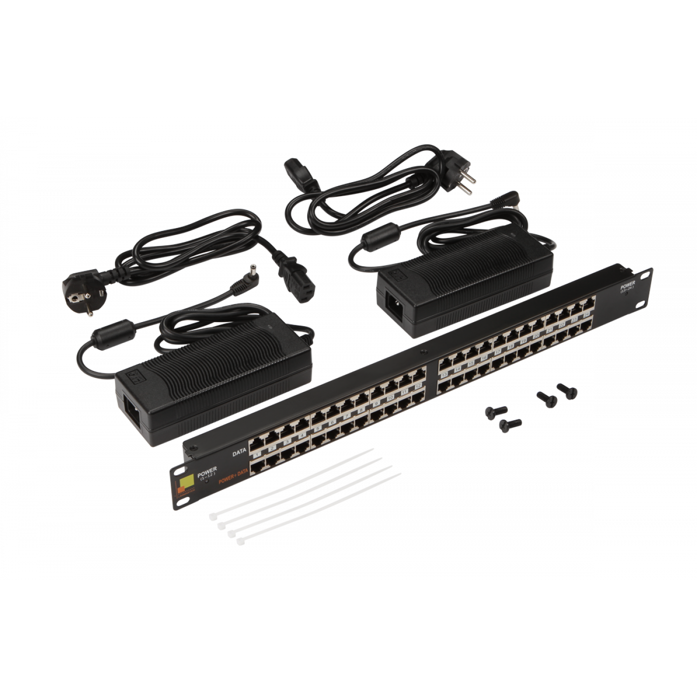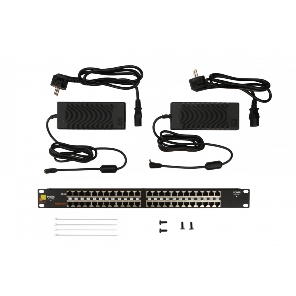 Панель POE 19", 24 порта, с двумя блоками питания 48V, 120W
