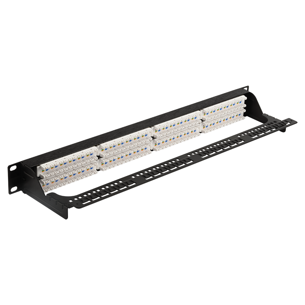 48-и портовая неэкранированная патч-панель предназначена для разделки на ней кабелей различных подсистем СКС и подключения отдельных составляющих сети друг к другу коммутационными шнурами.