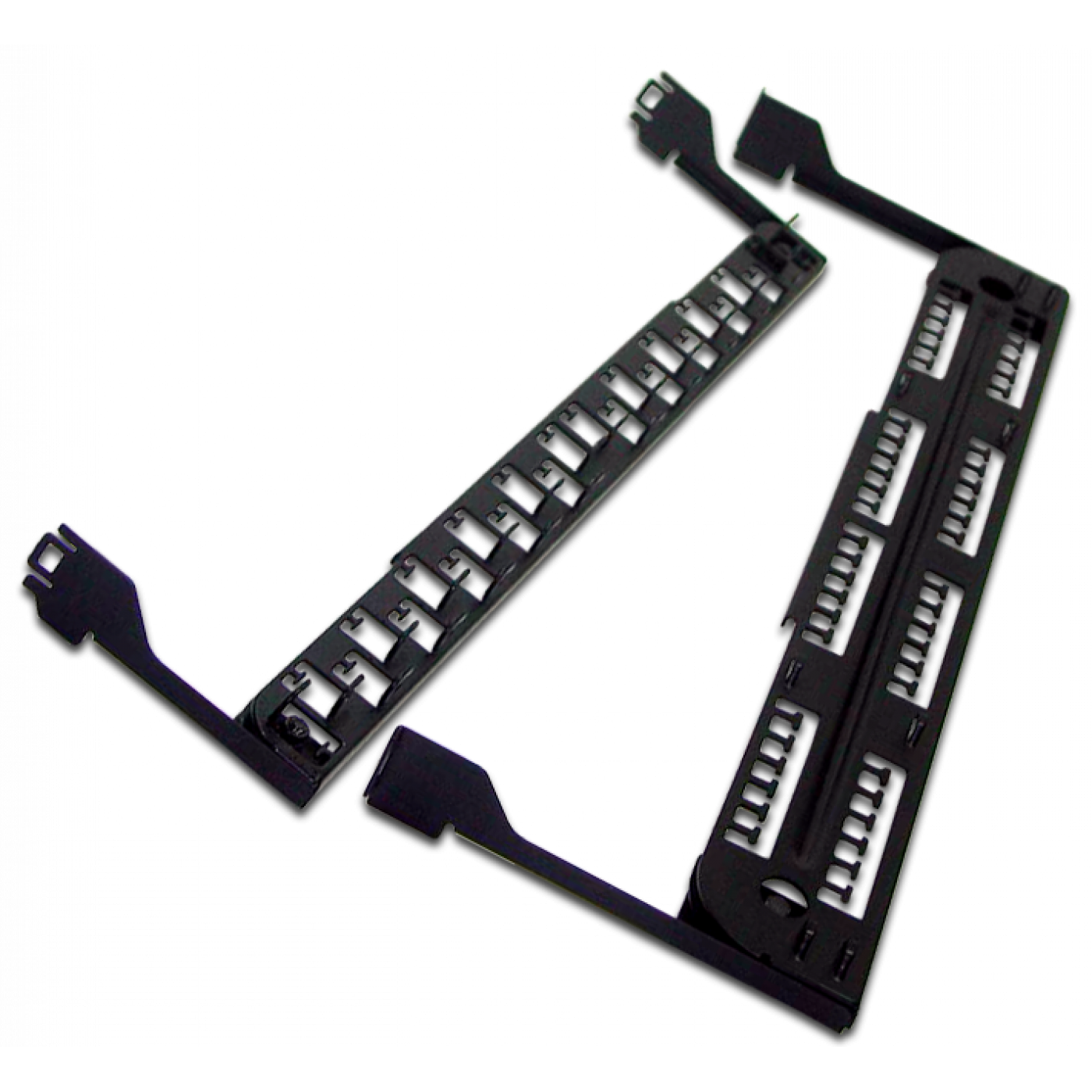 Поддерживающая скоба-органайзер применяется для фиксации кабелей, подводимых сзади к коммутационным и кроссовым панелям, обеспечивая требуемые радиусы изгиба, надежную фиксацию в процессе монтажа, снижение статических нагрузок на область контакта проводника кабеля и ножа IDC разъема патч-панели, вызываемых весом смонтированного кабеля.