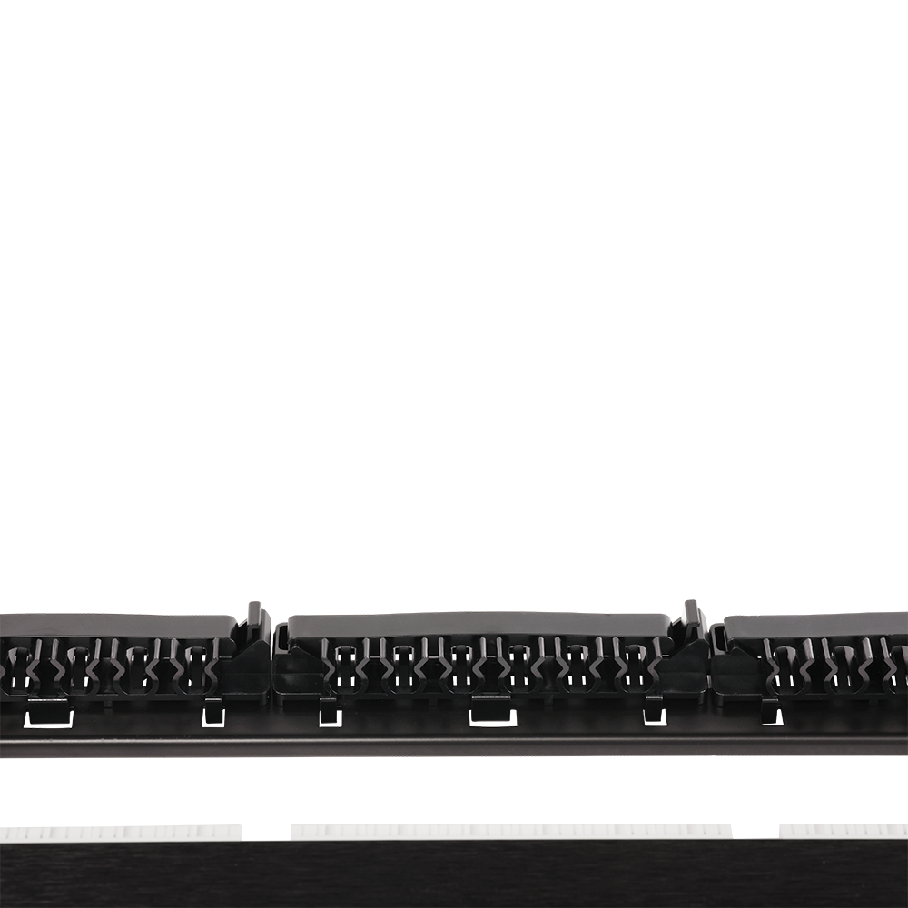 На скобе предусмотрены специальные пластиковые фиксаторы кабеля. Гребенка имеет специальные ложементы, которые позволяют фиксировать кабели различного диаметра без использования обычных нейлоновых стяжек.