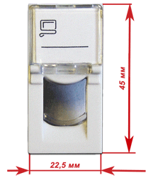 По сравнению с другими модульными вставками LANMASTER, данная вставка имеет увеличенное поле под бумажную маркировку, закрытое прозрачным пластиком. Для защиты контактов модуля от повреждений и пыли вставка имеет сдвижную шторку.