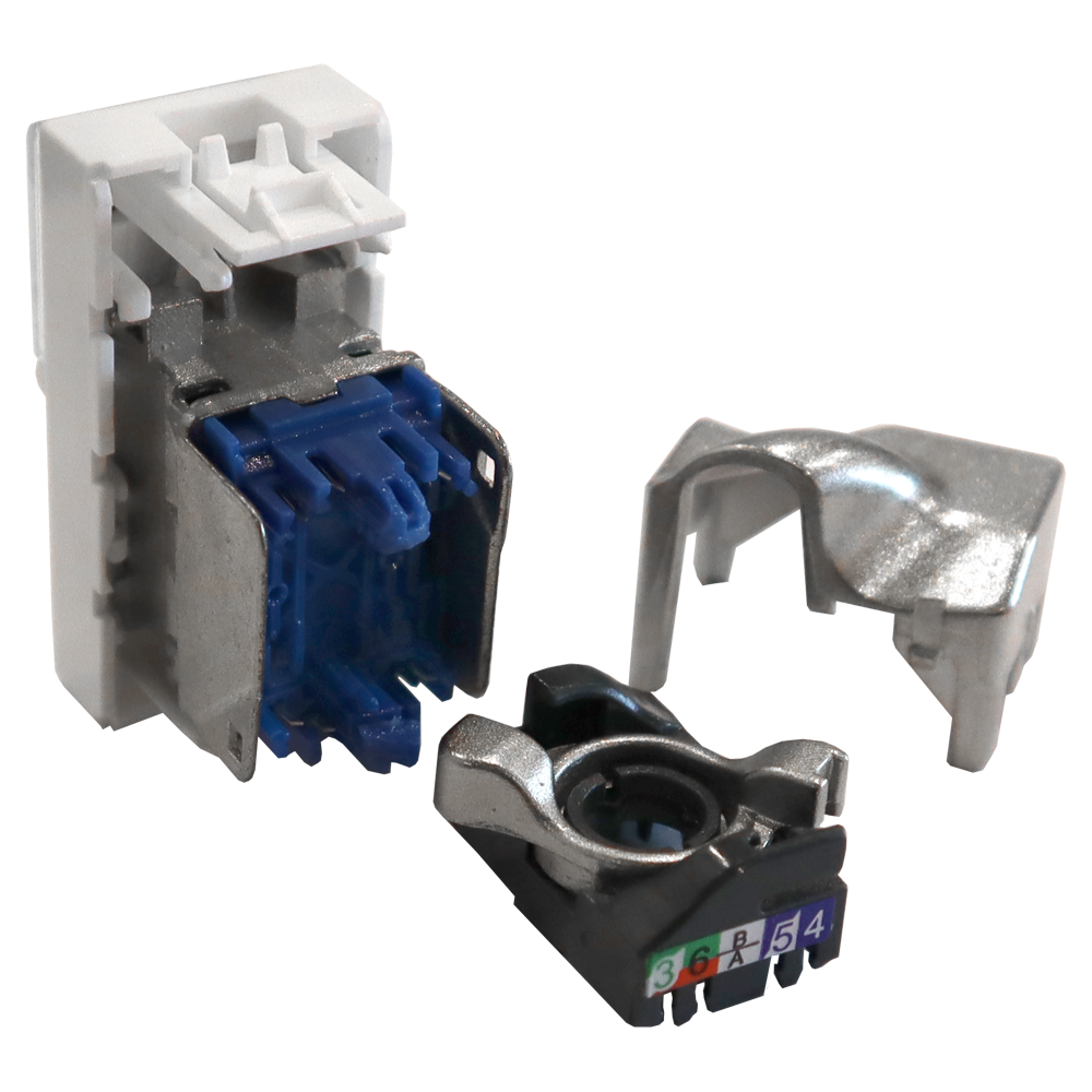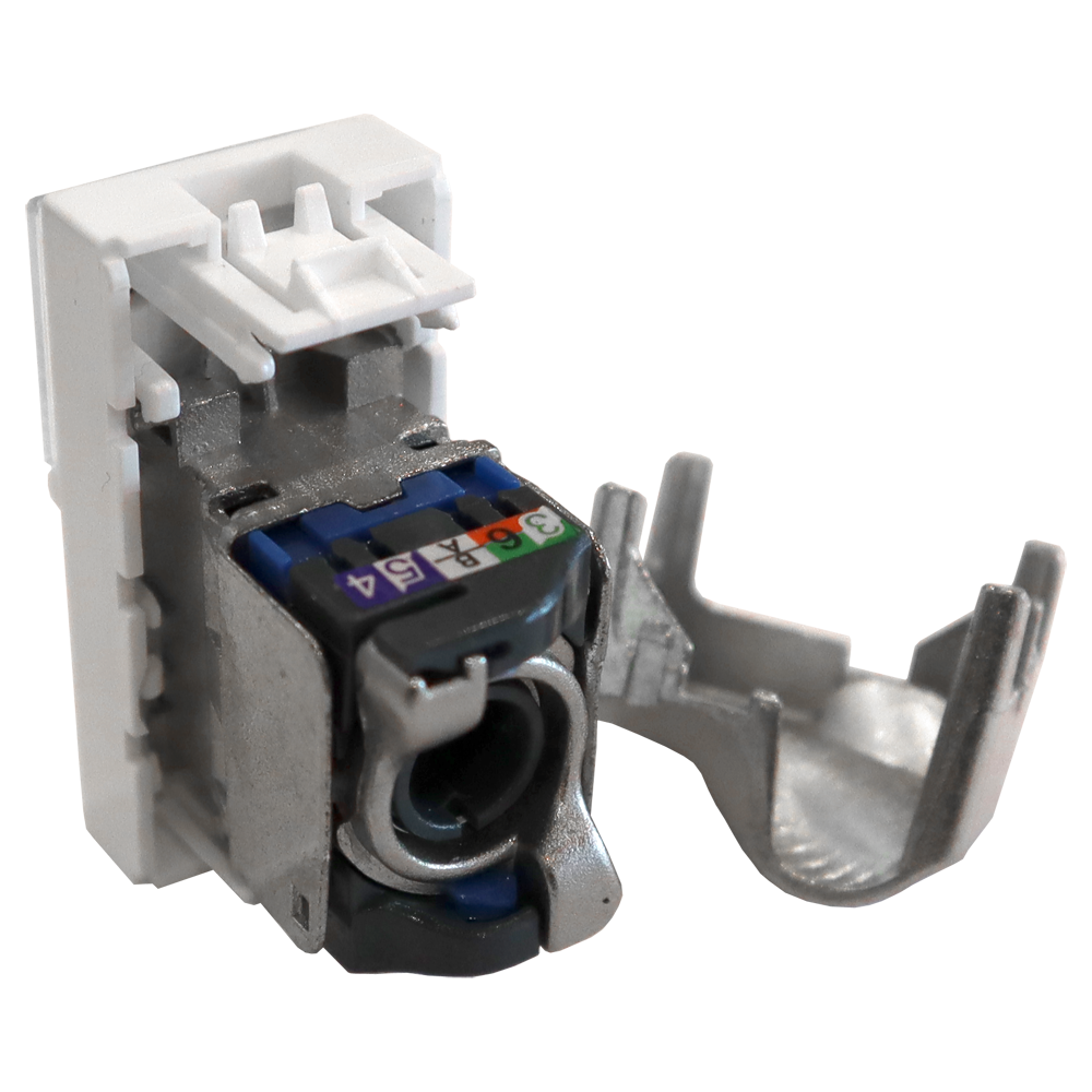 Для подключения кабелей используется способ врезного контакта сквозь изоляцию - IDC. Кабель раскладывается в пазы на крышке модуля, если необходимо обрезается. При защелкивании крышки и повороте механизма в фиксаторе, контакты прорезают изоляцию проводника. Таким образом, подключаемый кабель легко монтируется без использования инструмента. На крышке имеется цветовая маркировка, соответствующая схемам T568A и T568B.