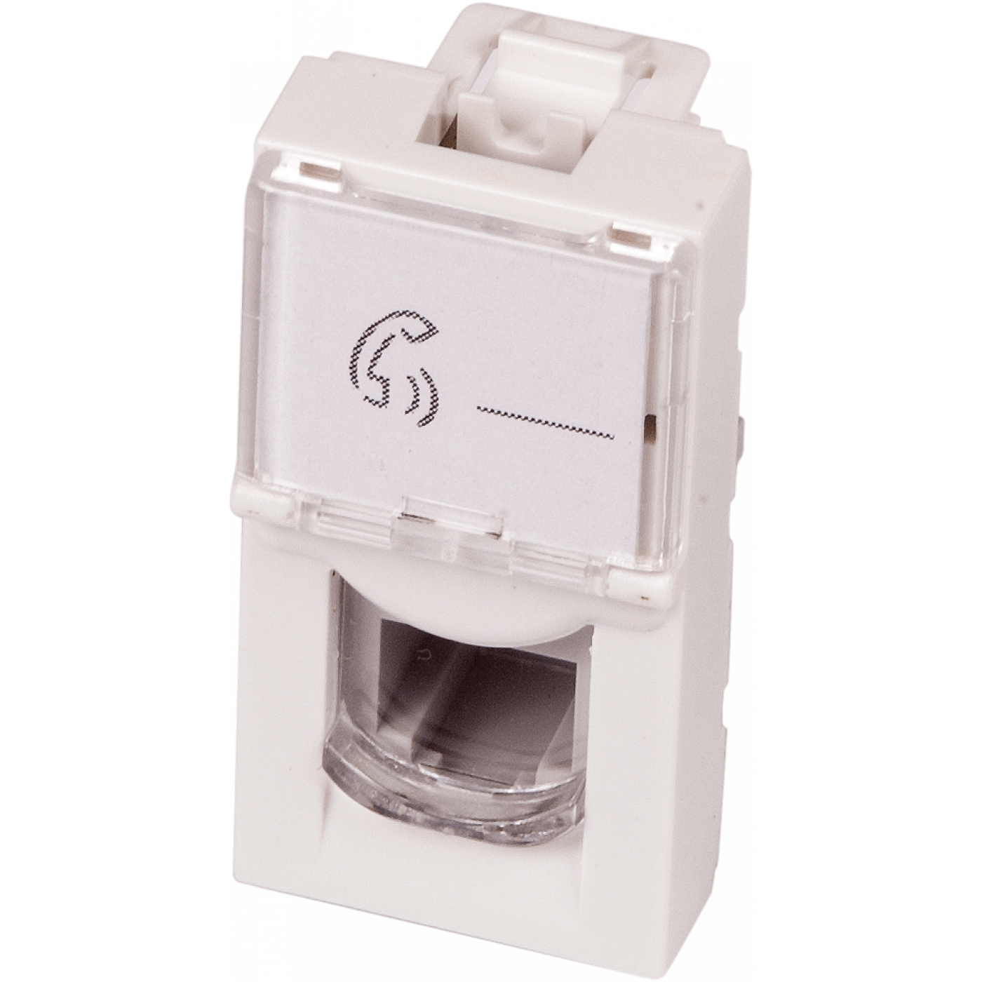 Вставка Mosaic 22.5x45, RJ-11, со шторкой и увеличенным окном маркировки, белая