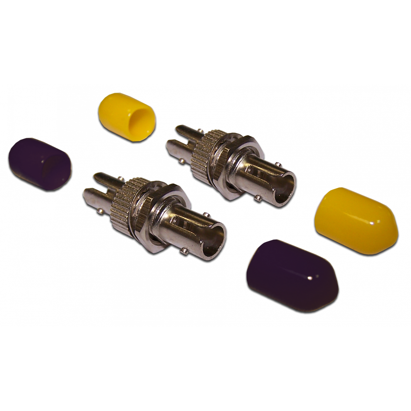 Производятся адаптеры для многомодовых (черные колпачки) и одномодовых (желтые колпачки) коннекторов.