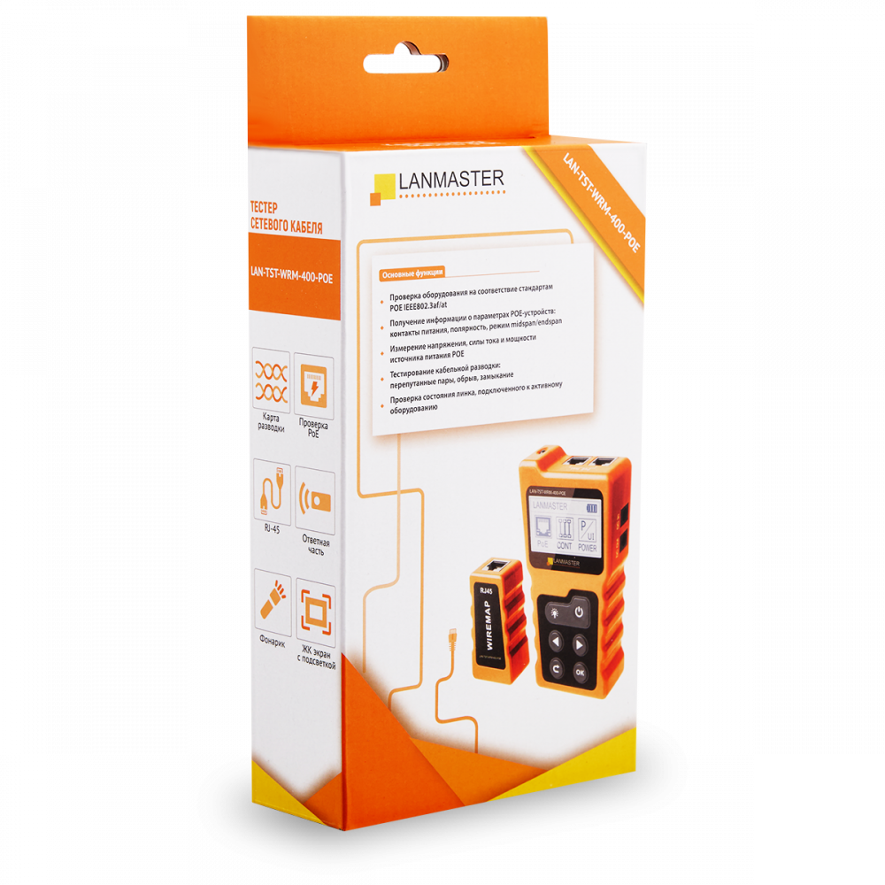 Тестер LAN-TST-WRM-400-POE предназначен для тестирования линий связи, построенных на основе медных витопарных кабелей.
