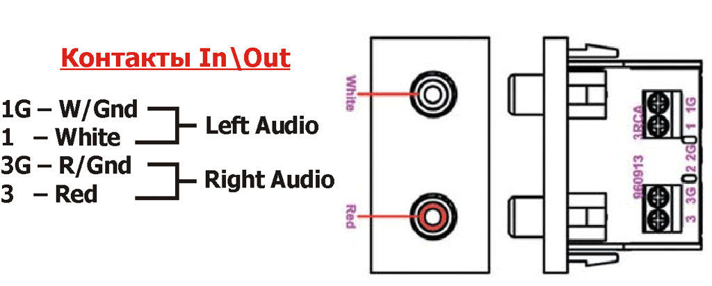 Лицевая панель предназначена для организации точки подключения аудиолинии. Стандарт RCA jack (или композитного) разъёма, широко применяется в аудио- и видеотехнике.