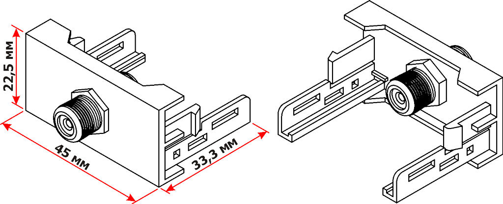 Панель оснащена адаптером F-81. Фиксация подводимого кабеля и отходящего шнура осуществляется при помощи F-коннекторов с обоих сторон.