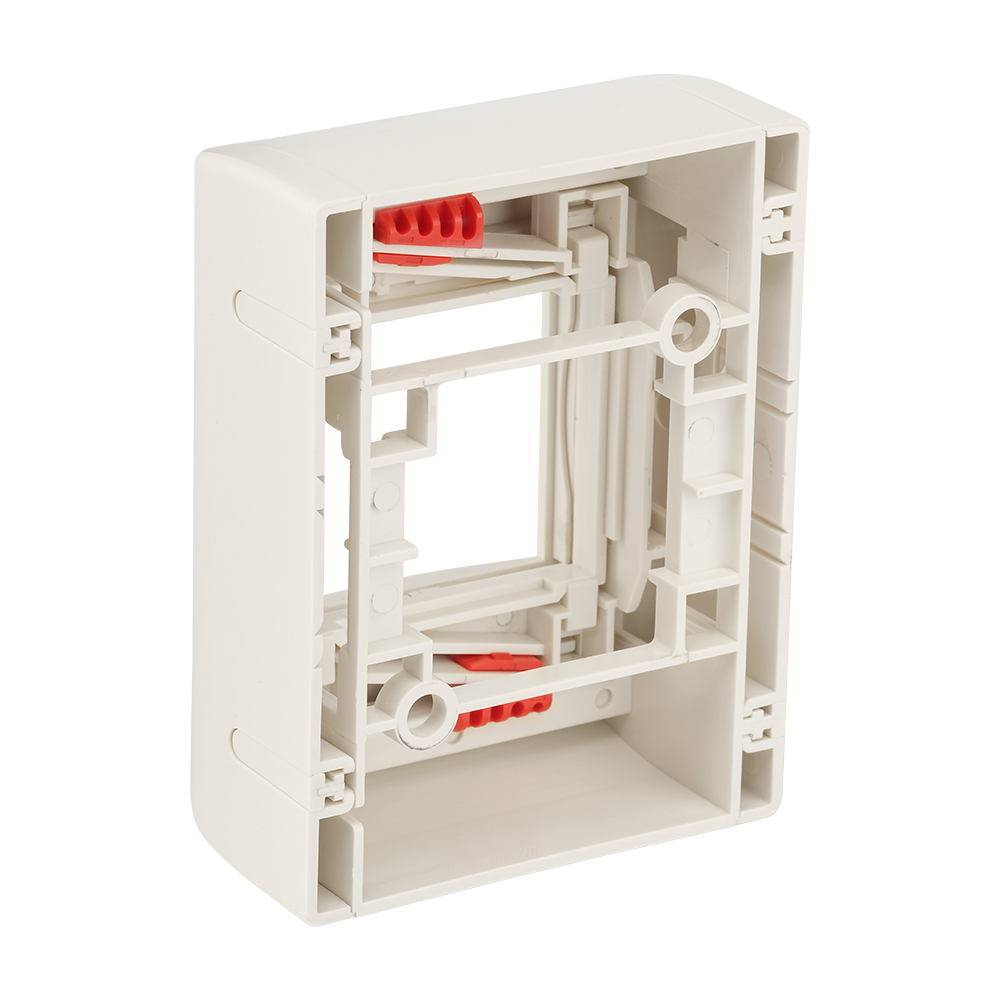 Настенная коробка предназначена для организации телекоммуникационных розеток, а также установки силовых электрических розеток, или любых других механизмов произведенных под французский стандарт Mosaic 45x45.