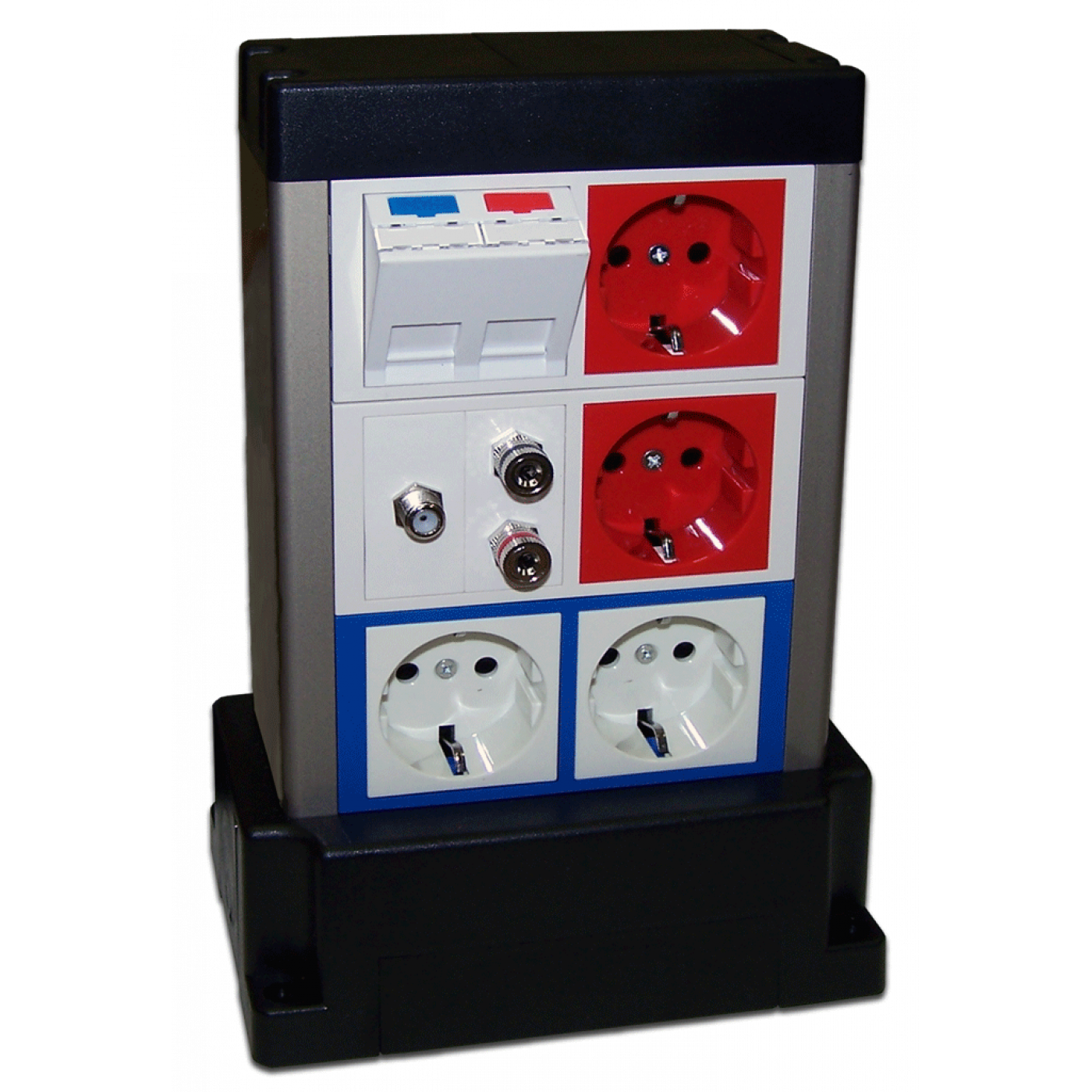 В базовой комплектации имеются три лицевые панели белого цвета для вертикально ориентированных модулей. При необходимости панели адаптеров могут меняться на платы других цветов (красные или синие), а также на панели с горизонтальной ориентацией устанавливаемых механизмов. Благодаря модульному принципу комплектации миниколонны, можно создавать различные сценарии комбинирования силовых, телекоммуникационных, мультимедийных розеток.