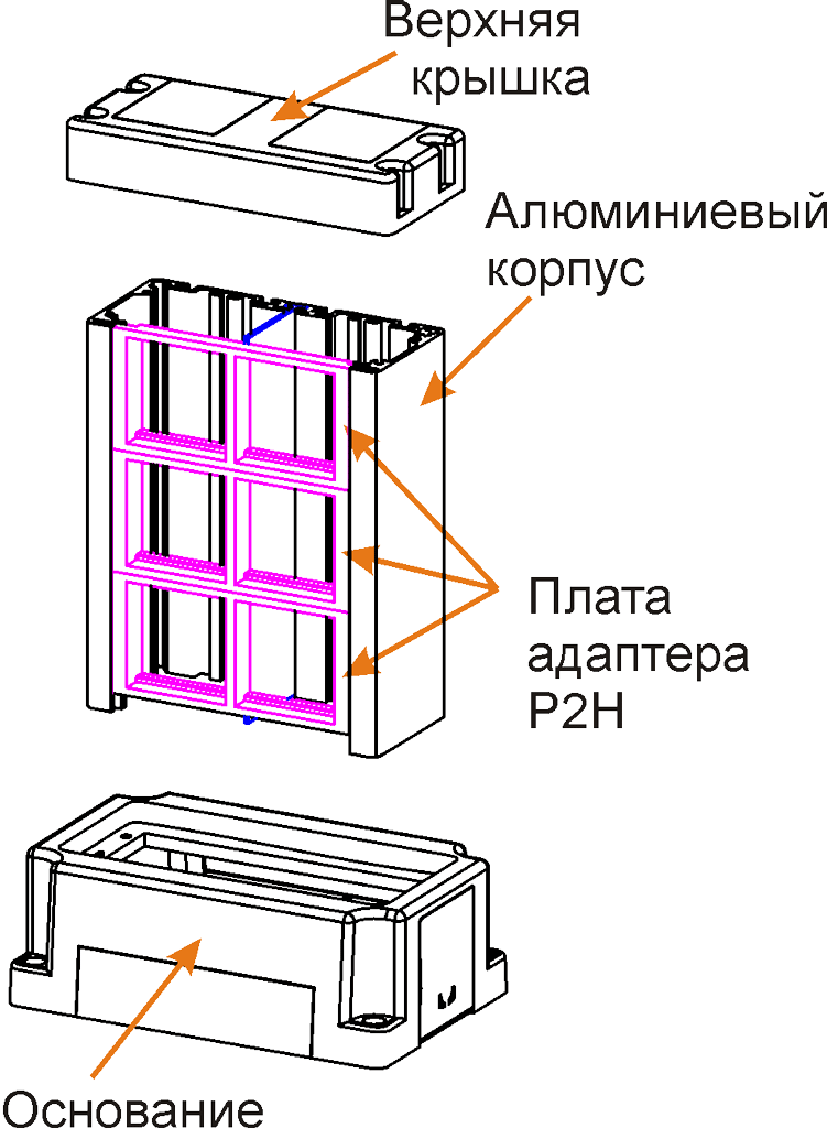 Корпус выполнен из алюминиевого сплава. Снаружи имеет анодированное покрытие.