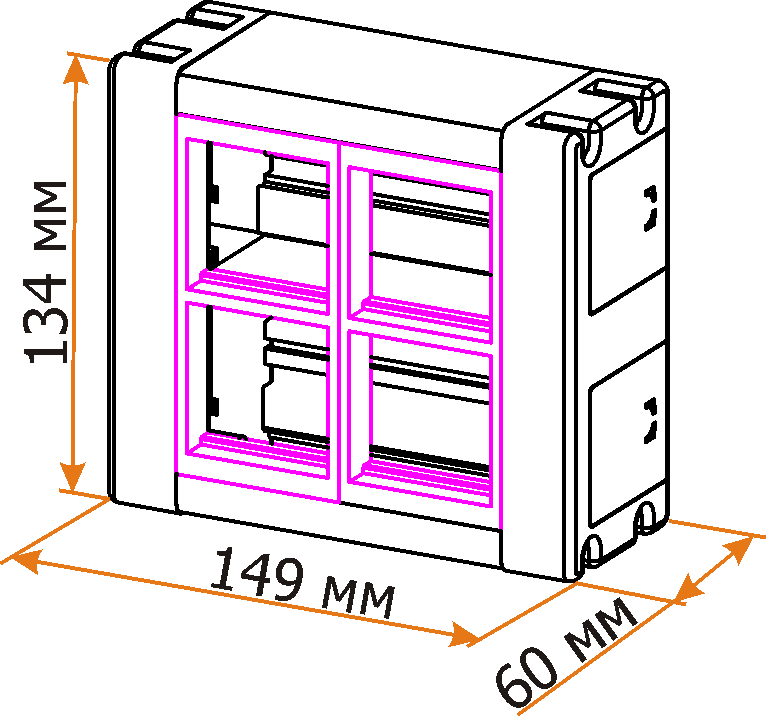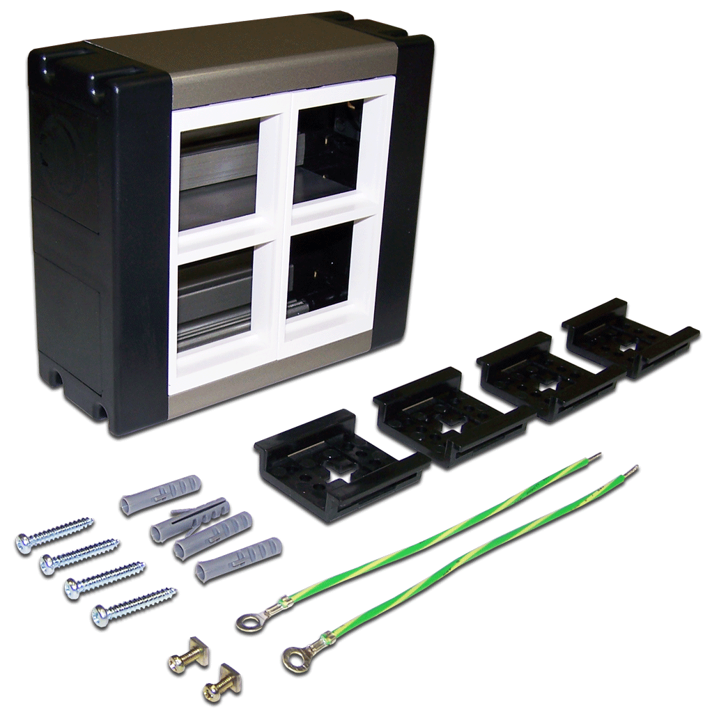 Бокс имеет 4 посадочных места под французский стандарт Mosaic 45x45 в лицевых панелях (по 2 места в каждой панели).