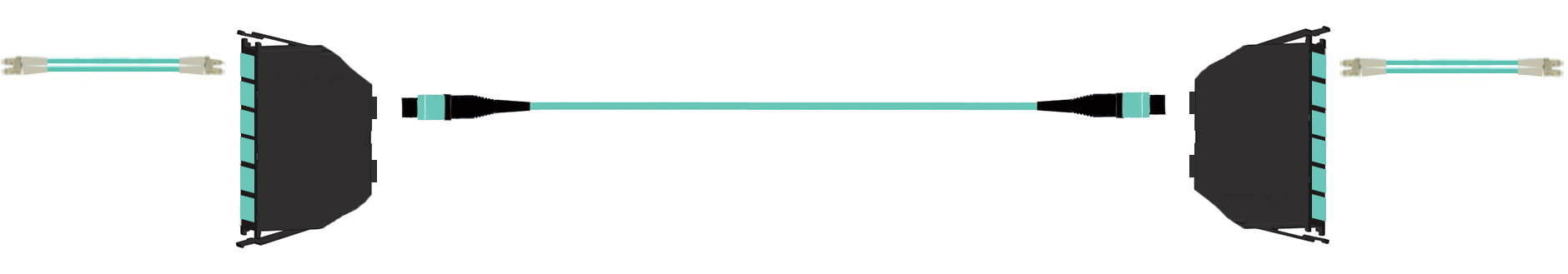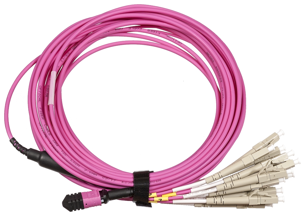 Разветвительная кабельная сборка («гидра») обеспечивает переход от 12-волоконного коннектора MPO к стандартным оптическим разъемам LC. Кабель можно подключать напрямую к активному оборудованию.