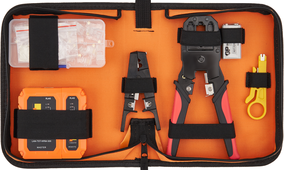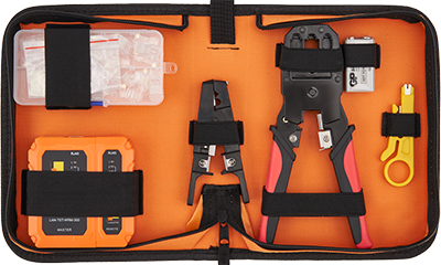 Базовый набор инструментовНабор представляет из себя комплект простых инструментов, которые чаще всего нужны под рукой при монтаже кабельной системы или при изготовлении патч-кордов. Инструменты и тестер, входящие в набор, позволяют производить: