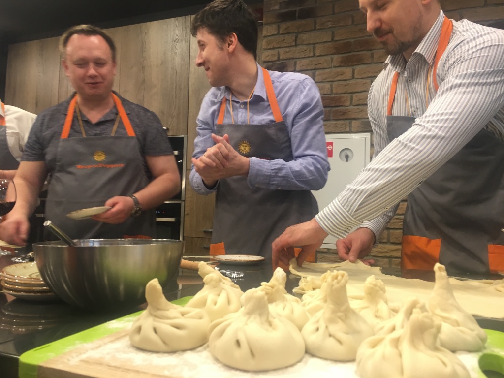 Поэтому вторая часть мероприятия была посвящена дегустации грузинских вин, а также тематическому мастер-классу, где участникам предложили примерить на себя профессиональные навыки по созданию кулинарных шедевров Грузии своими руками и под чутким руководством шеф-поваров.