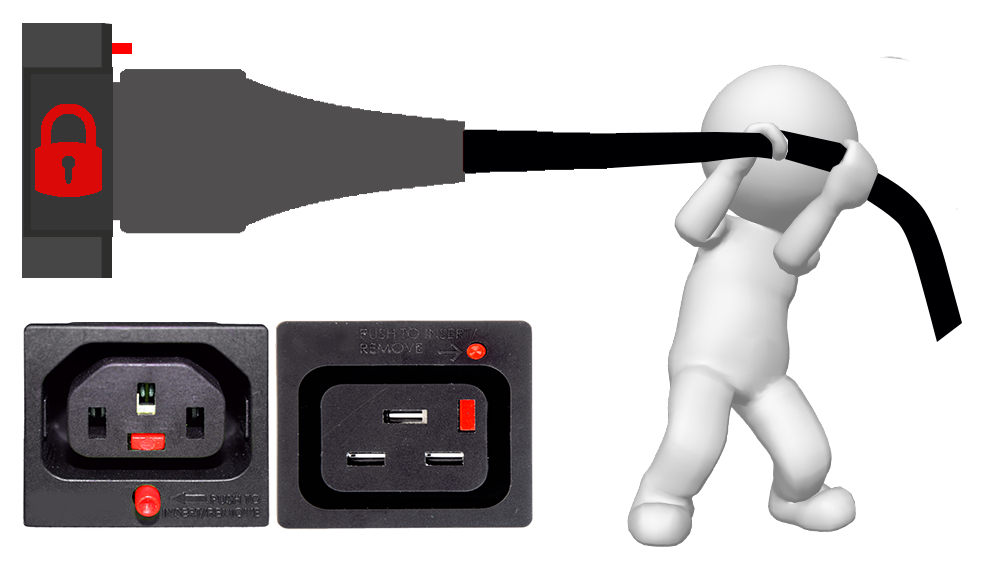 Но форс-мажорные ситуации с отключением непосредственно активного оборудования также не исключены. Представьте ситуацию, когда при проведении оперативных работ в той же стойке выпал шнур питания у сервера. Или даже просто во время уборки в офисе, сотрудник клининговой службы задел кабель питания от вашего компьютера, и у вас пропали труды работы над важным проектом за последние пару часов. В случае, если кабель питания физически закреплен в порту, такие проблемы исключаются по умолчанию.