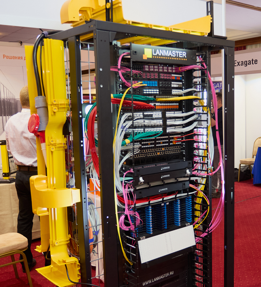 Показали решения на основе претерминированных сборок, ряд элементов, которые предназначены для GPU-кластеров, а также продукцию для высокоплотных сред в контексте оптоволоконных и медножильных систем. Также на экспозиции мы продемонстрировали образцы PDU, обладающих собственной системой мониторинга по банкам (группам). Это и многое другое оборудование было смонтировано на новую модель стойки ODF.